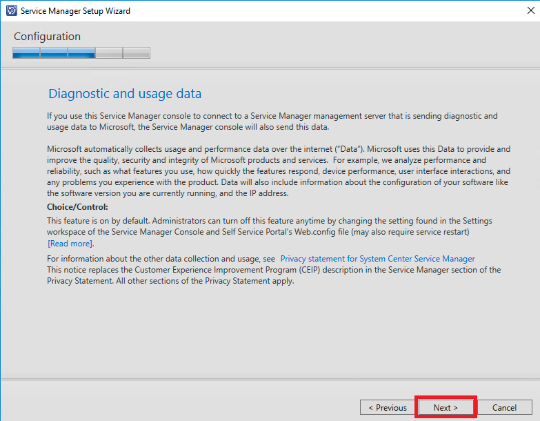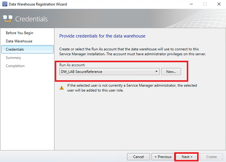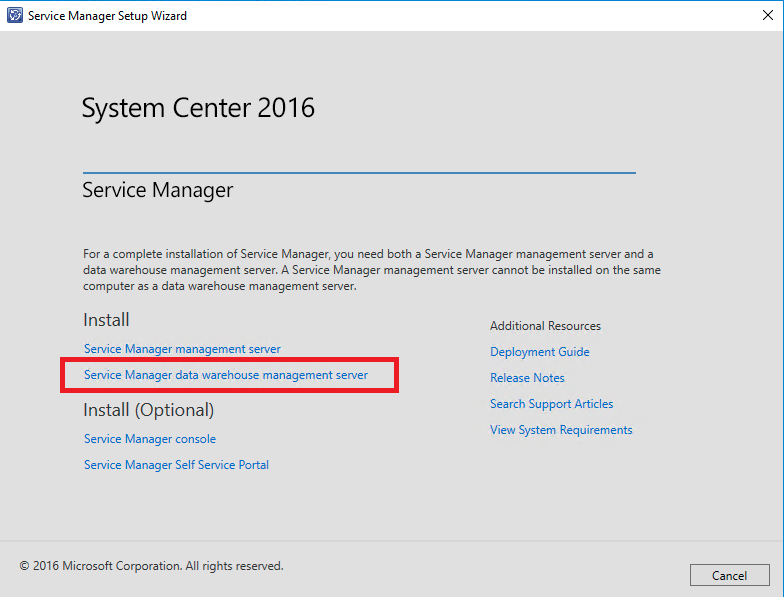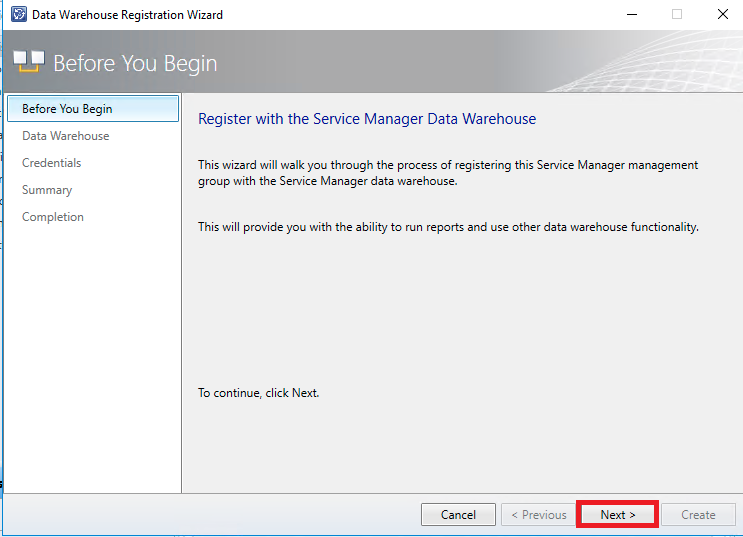 Atenção, para este processo você deve efetuar o login no servidor com uma conta que faça parte do grupo de gerenciamento do DW ( SCSM_DW_ADMIN) definido anteriormente.