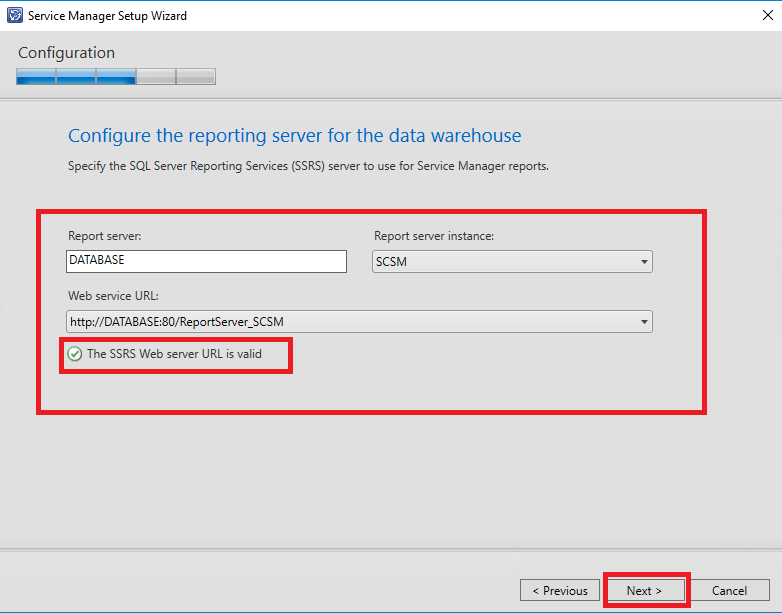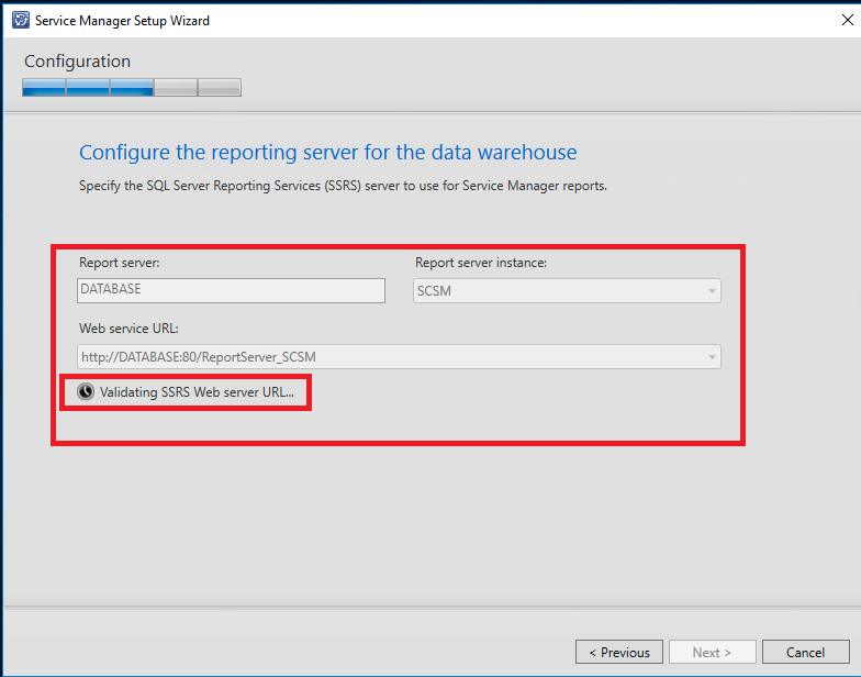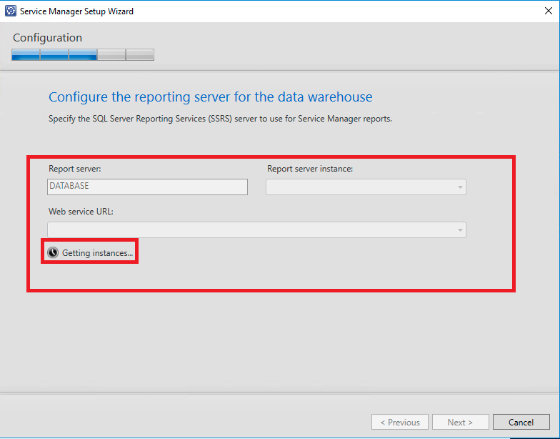 A próxima etapa será a configuração do serviço de Reporting Services do DW, aguarde até que o assistente identifique a instância do Report Server DW