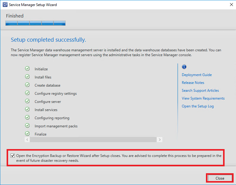Após o término do processo de instalação, selecione a opção "Open the Encryption Backup or Restore....." e selecione a opção "Close"