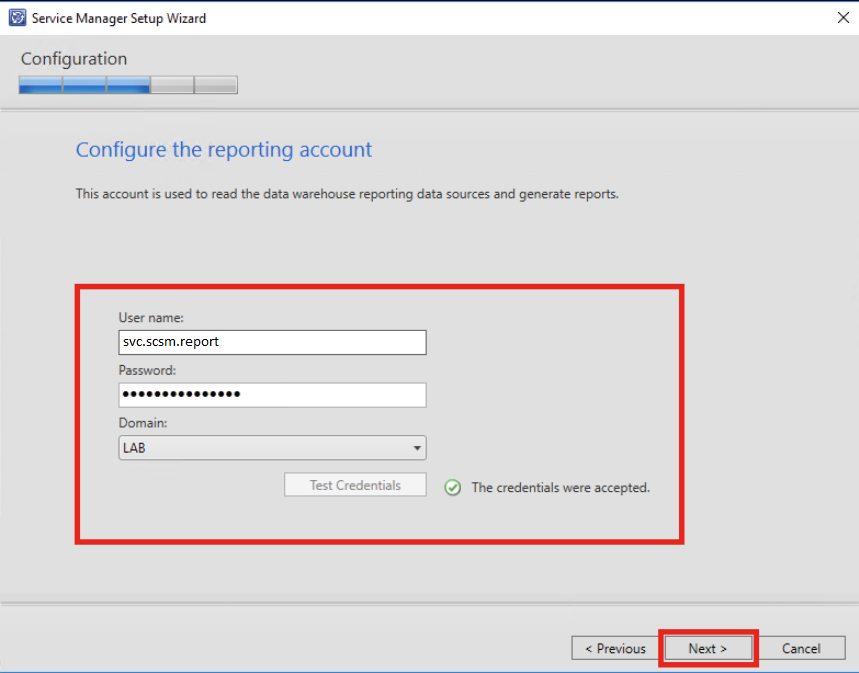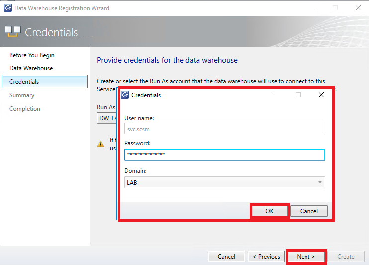 - svc.scsm = Conta que faz parte do grupo SCSM_DW_ADMIN e será utilizada para gerenciamento dos serviços de DW