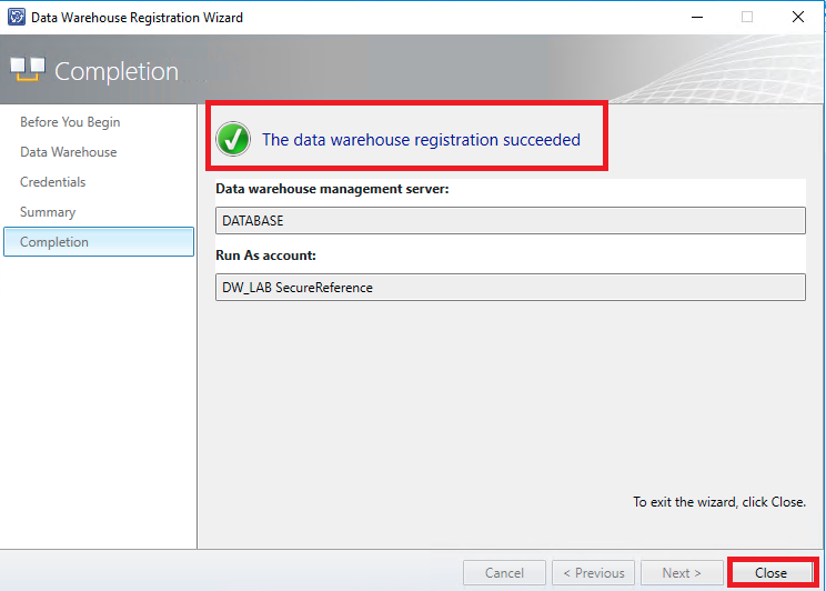 Ao término do processo será possível acompanhar o status do processo de registro. Selecione a opção "Close" para encerrar o assistente de registro
